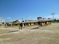 夏休み前から、体育科の山尾先生が中心になり「感動」をテーマに、「集団行動」と「開智よさこい」を一生懸命練習してきました。