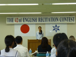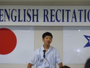 2014年09月30日(火) 中等部 < 過去のニュース 英語暗唱大会 28日土曜日に、英語暗唱大会が開かれ、本校から3年2組 岡本奈々さんと2年3組 鷲山晋大くんが出場してくれました。 岡本さんは、「The Fall of Freddie the Leaf」 について、 鷲山くんは、「An Artist in the Arctic」についての暗唱を行いました。 結果は、岡本さんが準優勝を頂いてきました。 2人は堂々と自信にあふれた素晴らしい発表をしてくれました。 この大会で得た経験を、日頃の学習にも生かせていけるよう、今後も頑張っていきましょう。
