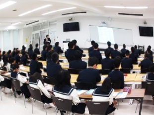 2014年10月30日(木) 中等部 < 過去のニュース 出張講義(中4・5 スーパー理進) 中4・中5のスーパー理進コースを対象に、早稲田大学 総合機械工学科の宮下朋之先生をお招きし、講義が行われました。 宮下先生のご専門は機械工学です。 今、勉強しているものが実際のモノ作りにどのように活かされているか、またそれらを用いてロボットや宇宙衛星を作成した話に、生徒は知的好奇心を大いに刺激されたようで、真剣な面持ちで耳を傾けていました。