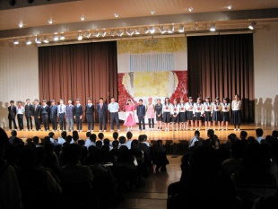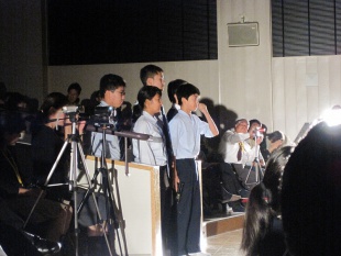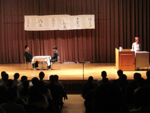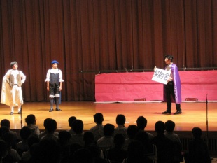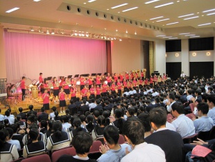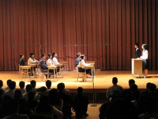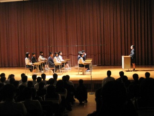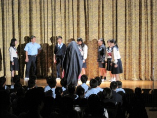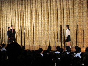 イントロ・クイズではホールの生徒がみんな参加して、正解者には景品があり和気あいあいとした雰囲気でした。