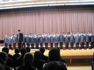 今回1年生の合唱では、課題曲「明日への勇気」と自由曲を各クラスで選んで、計2曲合唱しました。