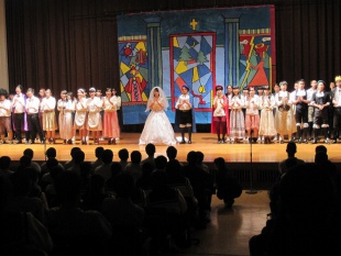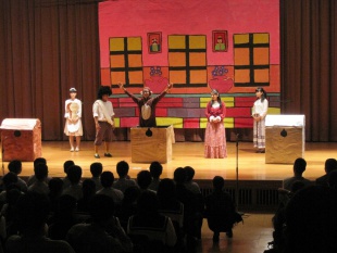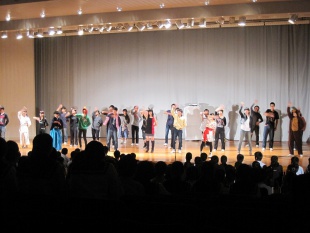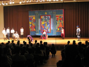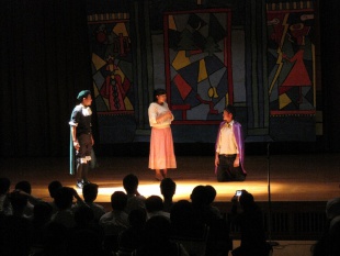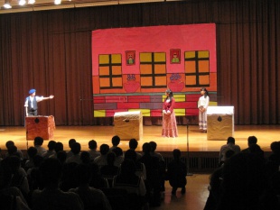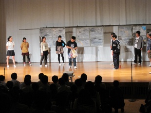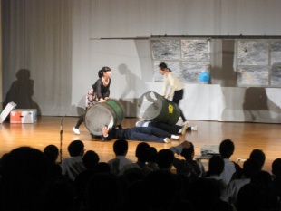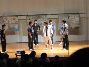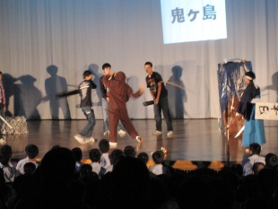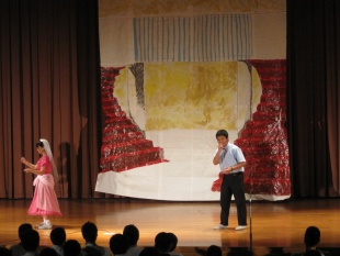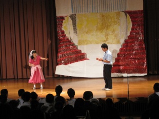 小道具や大道具がとても良くできていて、最後には花火の演出があり工夫を凝らした舞台発表でした。