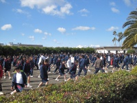 そして、校長先生から挨拶、体育委員長の成願くんの選手宣誓、準備体操、諸注意をしました。