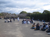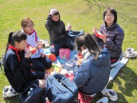 広い公園の中で友達とお話をしながら食べていました。