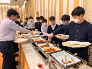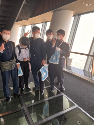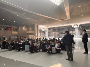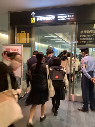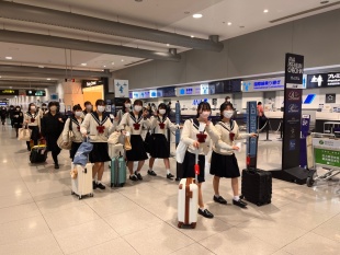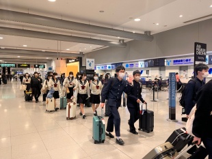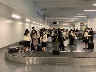 1.3組は関西国際空港より飛び立ちます。空港では、校長先生より「感染症対策を実施しながら、行動に迷ったら気持ちが良い方を選びましょう。挨拶するか迷ったら、挨拶をする。手伝おうか迷ったら、手伝う。みなさんの普段の校内活動を校外活動で実践しましょう。」とお話しを頂きました。