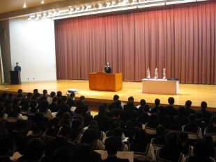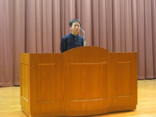 司会は昨年度の出場者の生徒達が流暢な英語で行ってくれました。初めに中村教頭先生が英語で挨拶をされました。長い挨拶文を完璧に丁寧に披露してくださいました。
