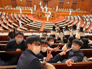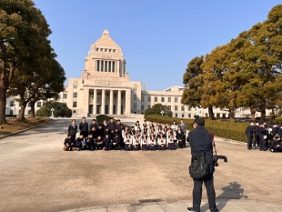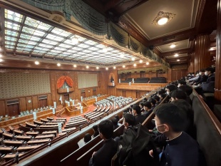 朝から国会議事堂に向かい、衆議院を参観します。バスでレインボーブリッジを渡り、車窓から東京タワーを真横に臨みました。
