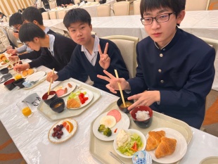 怪我人などもなく、みんな朝ごはんをたくさん食べています。修学旅行中にお誕生日を迎えた生徒がおり、歌を歌ってあげることは出来ないので拍手で祝いました。お天気は少し雨がパラついていますが、本日最初の目的地、上野公園に着く頃には晴れている予報です。