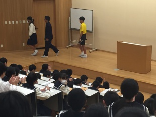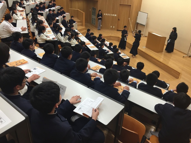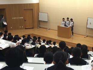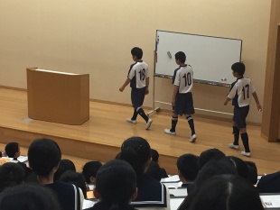 2015年04月13日(月) 中等部 < 過去のニュース 中学体育系クラブ紹介 6限目、中等部1年生はプラセットホールに移動し、体育系クラブについて先輩から紹介を受けました。 紹介したクラブは以下の8つです。 ・剣道 ・卓球 ・陸上 ・バスケットボール ・男女テニス ・バレーボール ・ソフトテニス ・サッカー