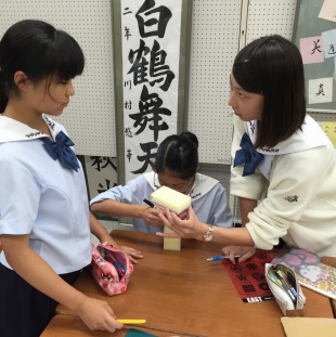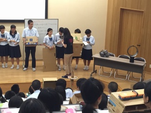 製作時間30分という限られた時間内で試作品を完成させ、みんなの前でグループごとにプレゼンテーションを行いました。