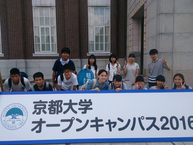 2016年08月09日(火) 中等部(4〜6年)・高等部 < 過去のニュース 京都大学オープンキャンパス(1日目) 京都大学オープンキャンパスに参加しています。 1日目は、総合人間学部、教育学部、法学部、理学部、医学部、薬学部、農学部のキャンパスツアーが開かれます。 たくさんの高校生が参加しています。 本校からは、13名が参加しました。 それぞれ思い思いの学部を見学しています。