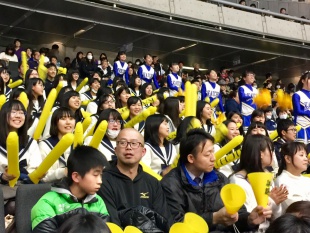 開智の応援団も初めての応援です。会場である東京体育館は、とても大きく、最初はみんなも緊張している様子でしたが、徐々にいつもの元気な応援になりました。