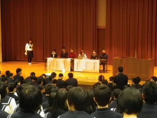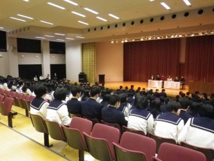 2017年03月09日(木) 中等部(4〜6年)・高等部 < 過去のニュース 中4高1 OB・OG懇談会 本日、6名のOB・OGの方をお招きして、OB・OG懇談会を実施しました。 まずは、6名のOB・OGの方に大学受験や、大学生活について講演していただきました。 次に、質疑応答の時間を取りました。 その後、各教室に戻って、来年度へ向けての決意を書きました。 今日の決意を忘れず、来年度からも学校生活を送ってほしいと思います。