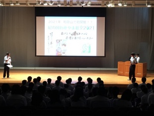 音楽部の演奏から始まり,各クラス,練習してきた劇を披露してくれました。