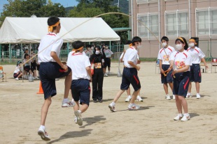 2020年09月17日(木) 中等部(4〜6年)・高等部 < 過去のニュース 開智祭体育部門 中4・高1の部 学校長挨拶 選手宣誓 準備体操 綱引き 綱引き 大玉転がし 大玉転がし 長縄跳び 長縄跳び 本日は開智祭体育部門(中4・高1の部)が開催されました。新型コロナウイルス感染拡大の防止のため、例年よりも規模を縮小した形での開催となりました。限られた内容でも、生徒たちはとても楽しんで過ごすことができました。次は文化部門です。是非、文化部門の方も頑張って、準備して欲しいですね。