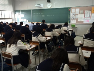 講演会の後、生徒たちは、各ホームルーム教室に戻り、小論文模試を受けました。