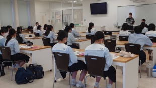 学部長 森岡先生、保健看護学部 谷野先生をお迎えし、大学での学びの説明や看護師を目指す人材として「人間力」の重要性を説いてくださいました。