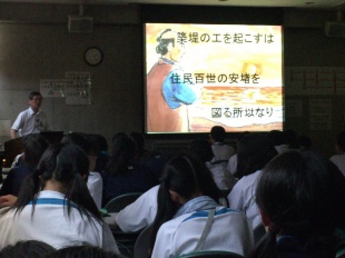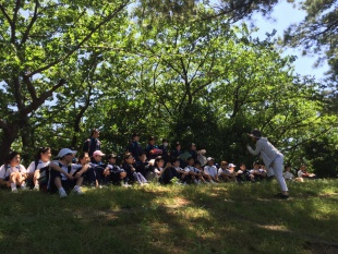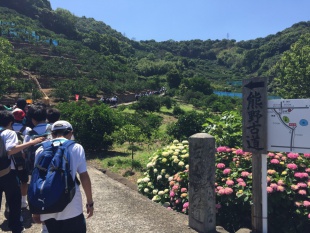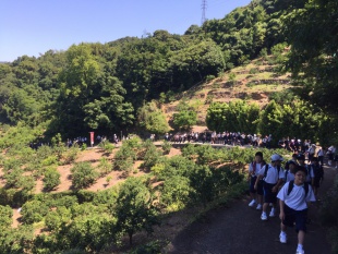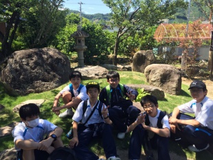 2016年06月03日(金) 中1 < 過去のニュース 中1 体験学習 本日、中等部1年生は体験学習で世界遺産の熊野古道を歩き、自然や郷土の歴史に触れ、稲村の火の館で防災学習をしました。 熊野古道の山道は体力と忍耐が必要でしたが、登りきった景色は美しいものでした。 本日はピクニック日和で、綺麗な青空の下でお弁当を食べました。 稲村の火の館では、防災のために築かれた堤防で語り部の方に話を伺い、施設で3Dシアターを見て防災意識を高めました。 予定通り16:07に和歌山駅に到着し、地下広場で16:17解散しました。