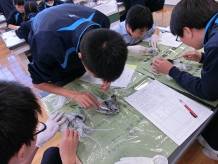 2016年11月12日(土) 中1 < 過去のニュース 中1理進レベルアップ講座 中学1年生理進コースのレベルアップ講座でイカの解剖実験を行いました。 普段何気なく食べているイカですが、それはほんの一部で中には様々な器官が隠れています。 積極的に解剖して生物の不思議を感じてくれました。