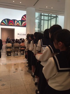 今日、中学一年生は和歌山県立博物館・美術館に見学に行ってきました。文化や芸術に触れることで豊かな感性を養い、知的好奇心を高め、また、郷土の歴史や文化を学ぶことを目的としています。生徒達は、公共の場でのマナーをしっかりと守って、博物館と美術館のそれぞれで、自分のお気に入りの作品についてレポートを書いていました。本物を見ることは、とても価値のあることです。今日の体験をきっかけに、絵画や和歌山県の歴史にも魅力を感じてもらえたらと思います。