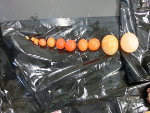 2016年12月17日(土) 中1 < 過去のニュース 中1理進レベルアップ講座 中学1年生の理進コースで、ニワトリの解剖実験を行いました。始めは怖がっていた生徒も次第に慣れてきて、積極的に取り組むことができました。写真は、取り出した卵を並べたものです。生物の神秘を改めて感じたようです。