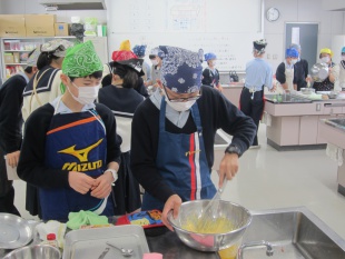 2018年03月19日(月) 中1 < 過去のニュース 中1 英語 DE COOKING 本日、1年1組はアップルケーキを焼きました。すべて英語で行いました。みなさん、英語を上手に話し、スムーズにケーキを焼いていましたね。おいしかったです。