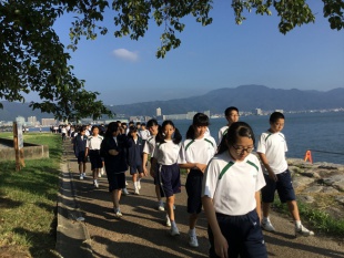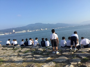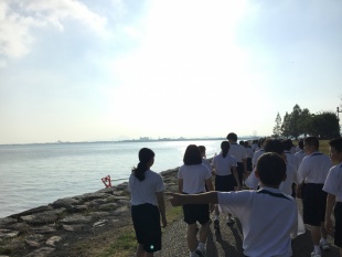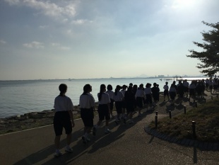 朝は6時半に起床し、6時50分から琵琶湖の湖畔を散歩して、朝からの勉強に備えます。