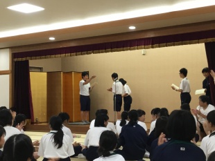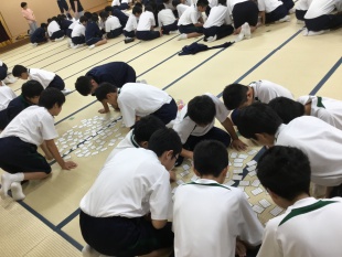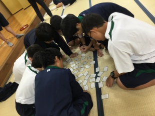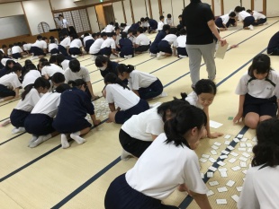 国語ではこの後行われる百人一首クラスマッチの予選が行われ、お互いを高め合いながら良い雰囲気で取り組めています。