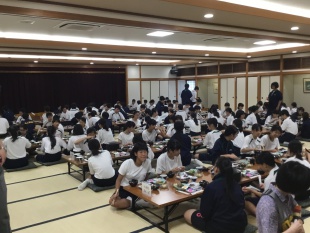 2018年08月03日(金) 中1 < 過去のニュース 中等部1年生勉強合宿3日目 勉強合宿3日目が始まりました。 合宿中集中しているので少し疲れも出てきていますが、しっかり目覚めて朝から活動できています。 朝の集いで体を動かしたら昼食を食べ、2時間最後の授業に取り組みます。 12:50 アヤハレークサイドホテルを発ち、帰路につきました。