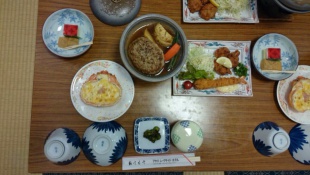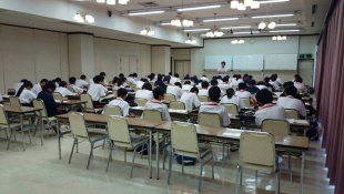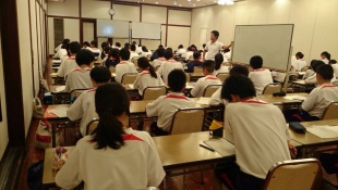 ホテルまで徒歩で10分程です。体操服に着替えて大広間で食事を取り、早速13時から授業が始まりました。写真は1限目の数学の授業です。