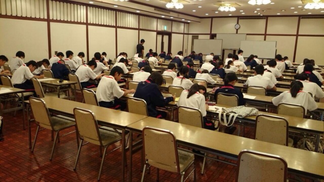 「勉強合宿」と言うだけあって朝から晩まで学習です。夏休み中は1人で過ごしていると、このような勉強時間を維持することは難しいと思います。この3日間は友達や先生と皆一緒に頑張っているからこそ乗り越えられるのでしょう。合宿は明日で終わりますが、休みだからといって急に緩んでしまうことがないよう、この勉強合宿を乗り越えたことを自信にし、規則正しい生活と学習時間を維持しましょう。