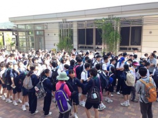 2015年06月05日(金) 中1 < 過去のニュース 中1体験学習(熊野古道) 中等部1年生体験学習 平成27年6月4日(木) 午前:熊野古道散策(紀伊宮原ー湯浅) 午後:稲むらの火の館見学、広村堤防見学 快晴のもと、全員が元気に熊野古道を歩ききりました。稲むらの火の館では、濱口梧陵の功績を学び、現在の防災にどのように活かすかを考えました。