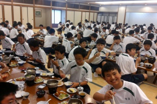 午後の授業を終え、おいしくにぎやかに夕食をいただきました。集中して勉強すると脳がたくさんのエネルギーを消費するのでおなかが空きます。鍋焼きうどん・から揚げ・エビフライなど、みんなの好物が並び、たくさんおかわりしていました。