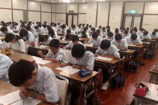 確認テストが始まりました。この合宿では、かなりの延べ時間勉強してきました。どのくらい力が身についているか、実感できるテストになるといいですね。