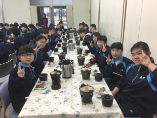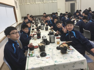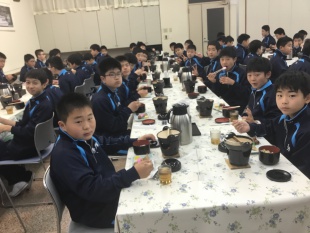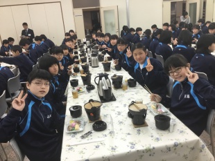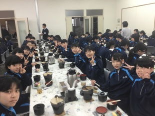 2日目の朝の天気は、あいにくの雨でしたが生徒たちは朝の学習を終えた後、元気に朝食をとっています。自分たちで6時半に起床して朝の集会にも集合することが出来ました。よく頑張っています。