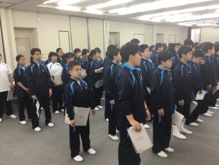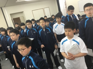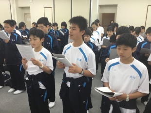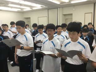 次は、音楽科 佐々木先生から校歌・賛歌の指導を受けました。歌詞に込められた意味を深く考えながら心を込めて歌っている様子が印象的でした。