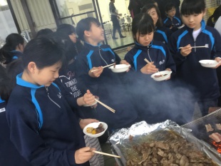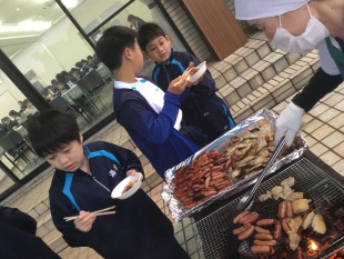 2019年04月10日(水) 中1 < 過去のニュース 中学1年生 宿泊研修2日目 3 雨でかばた見学が中止になりました。その分勉強時間が長くなりましたが、集中して取り組むことができました。その後は、お待ちかねのバーベキュー!笑顔いっぱいの楽しい時間になりました。鉄板の上のものを譲り合う姿がとっても素敵でした。夕食後の予定を変更し、今からかばたのビデオを鑑賞します。