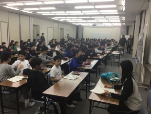 2019年04月10日(水) 中1 < 過去のニュース 中学1年生 宿泊研修 2日目 4 ビデオ鑑賞と中川先生による講話が無事に終了しました。五分前行動ができたので、予定より早く始められました。真剣な様子で話を聞いていました。このまま続けていけると良いですね。みんなが良いカメレオンになれますように。明日で合宿が終了するので、最後まで元気に頑張りましょう。