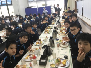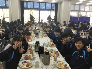 2019年04月11日(木) 中1 < 過去のニュース 中学1年生 宿泊研修 3日目 1 遂に最終日が来ました。天気が良かったので、朝から少し散歩をして、体操をしました。今日はいいお天気で、虹も出ていました。みんな気づいていたかな。 朝食の時間は今日も笑顔がいっぱいです。1日目は食べられなかった野菜を一生懸命食べている生徒もいました。少し成長できたかな。 閉校式も終え、次は琵琶湖博物館見学です。ちなみに、1日目のレクリエーションの優勝は1組さんでした!