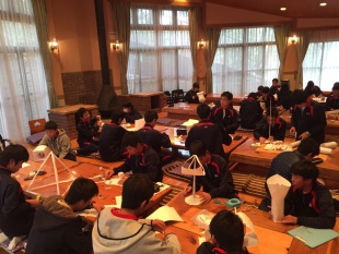 夕食後、天の川が綺麗に見える19:30頃、星見台の屋上に登り、天体観測をしました。辺りは暗く写真には写りませんでしたが、双眼鏡で無数の星を確認できました。また、午前中に施設の方から望遠鏡の操作方法を学び、しっかりと技術を習得した生徒は自分で望遠鏡を操作し、木星などに焦点を合わせていました。