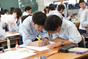 2016年05月21日(土) 中2 < 過去のニュース 中2理進レベルアップ エッグドロップ 本日、中2理進クラスはエッグドロップコンテストを行いました。 『生卵を守る飛行船』を四つ切画用紙1枚、B4普通紙5枚で作成し、校舎4階から落下させる競技です。11作品中、生卵を守りきることができたのは、たったの2作品でした。 成功の秘訣は、空気の抵抗を利用してなるべくゆっくりと落下させることだとわかり、次回は必ず生卵を守りきることを誓いました。
