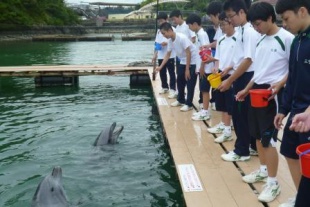 午後は京都大学白浜水族館(1組)、太地くじらの博物館(2・4組)、串本海中公園(3組)へ見学に行きました。バックヤードツアー、餌あげ体験など実際に近くで生物を見て歓声があがっていました。