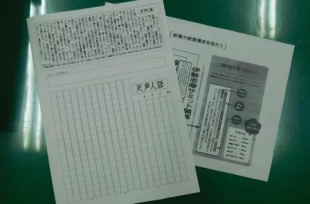 6限目には天声人語の書き写し、また1分間で天声人語を記憶し、何文字間違えずに書き写すことが出来たかをチェックする脳トレ版にも挑戦しました。29字以上が10代レベルだそうですが、中には40字以上を記憶した生徒もいました。