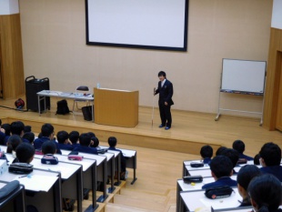 大前先生は橋本市の中学校で社会の教員をされています。10歳頃から盲目となった先生の今までの人生や、先生が使用するパソコンから発する音声の違い、普段の生活での不便なこと、困ったこと、また助けてもらい嬉しかったことなどのお話をしていただきました。