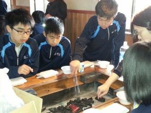 おいしく朝食をいただき、今、1限目の東野先生の理科授業です。これまで勉強してきた理科知識を活かしたクロスワードパズルで、チームごとに得点を競います。