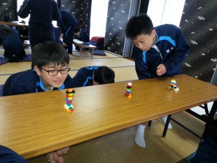 午後からは、太陽観測、プラネタリウム観賞、そして八木先生と溝手先生によるサイエンスコミュニケーションの授業がありました。例えば目の前にある組み立てられたレゴブロックを、離れた場所にいるチームメイトにその組み立て方を言葉だけを使って伝えます。チームメイトは、その説明を元にレゴブロックを正確に再現しました。みんなで工夫しながら、「どう表現すれば正確に伝わるか」を学ぶ授業でした。みんな制限時間いっぱい楽しんで取り組んでいました。