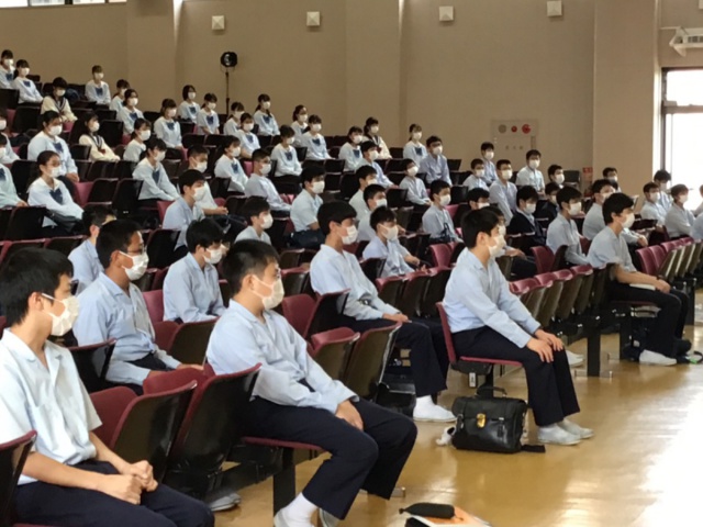 2020年05月22日(金) 中2 < 過去のニュース 中2 登校日 5月22日、中学校二年生の登校日がありました。 始業式以来の登校でしたが、元気な顔を見られて良かったです。 身長が伸びた生徒や、声変わりした生徒も多く、少し驚きました。 みんな会わない間に成長していましたね。 久々に学校に来て、中川先生のお話を聞いて、背筋が伸びたでしょうか。 今日のお話を心に納め、日ごろの糧にしてください。 次に会うときまで、自分を律して毎日を過ごしてください。 成長した姿を見られる日を楽しみにしています。