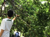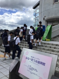 2022年06月07日(火) 中2 < 過去のニュース 中2 体験学習② 【梅もぎとり体験】 梅振興館では梅についての資料や展示を見学しました。みんなメモを取って真剣に梅について学びました。 梅もぎ体験では、赤く色づいた大きな実を探して、もいでいました。お土産に子どもたちがもいだ新鮮な梅を持ち帰ります。是非、家で梅ジュースや梅干しにして楽しんでください。(なぜか梅もぎをしていたらカニを発見!)
