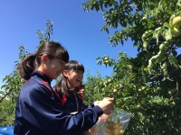 まずは、みなべ町で「うめもぎ体験」をしました。