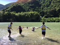 昨日の雨で川が増水し、下ることができない部分もありましたが、生徒たちは川に飛び込んだり水をかけあったり山々に囲まれて溌剌(はつらつ)と楽しそうにしていました。